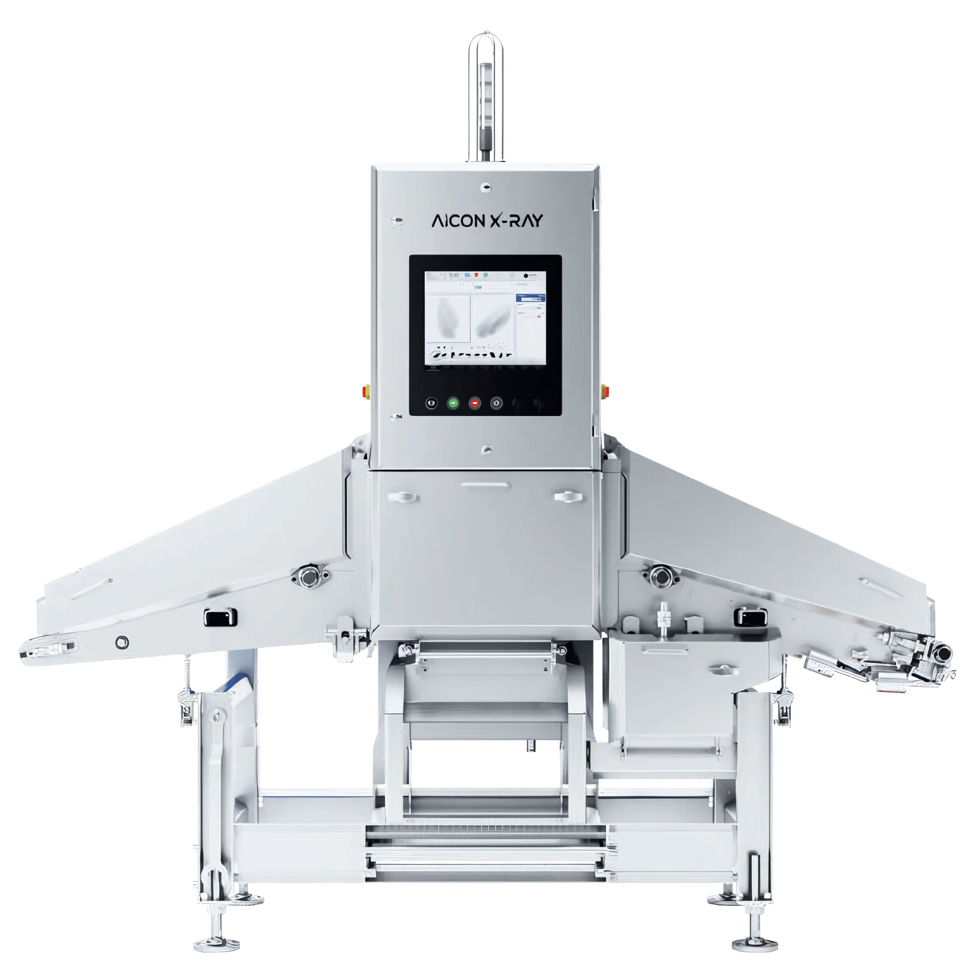Sistema de inspeção de Raio-X de ultra-desempenho projetado para o controle de qualidade de carnes cruas. Graças a Técnologia avançada e um Detector de Contagem de Fotões (AICON PCT), o dispositivo pode detectar até 1mm de osso calcificado.